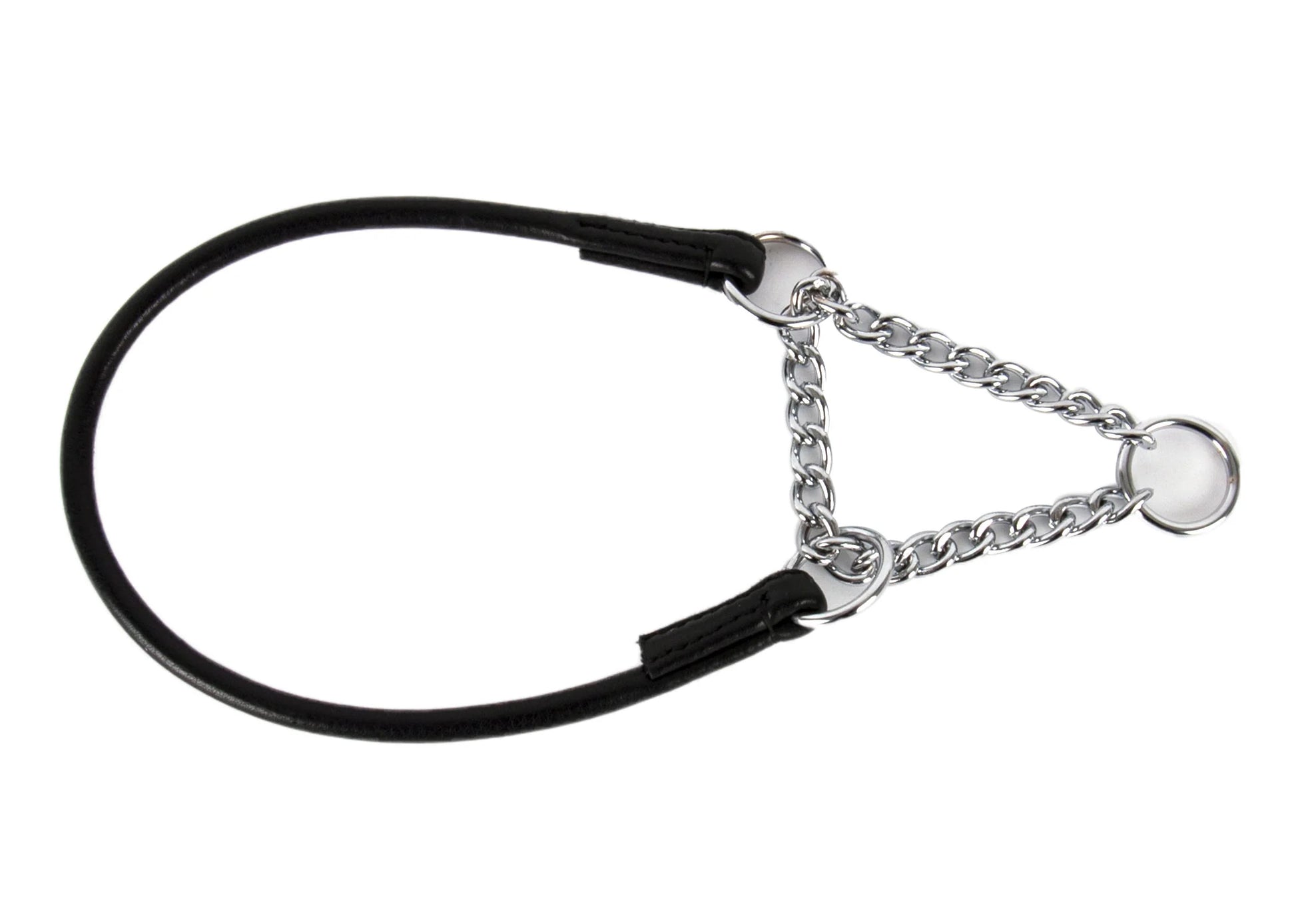 Our range of round-sewn Half Check Elk leather collars are produced from the finest quality soft bridle leather and hand-stitched to create a beautiful smooth leather collar which, being round-sewn, helps to reduce coat damage and breakage without compromising the leather's strength.