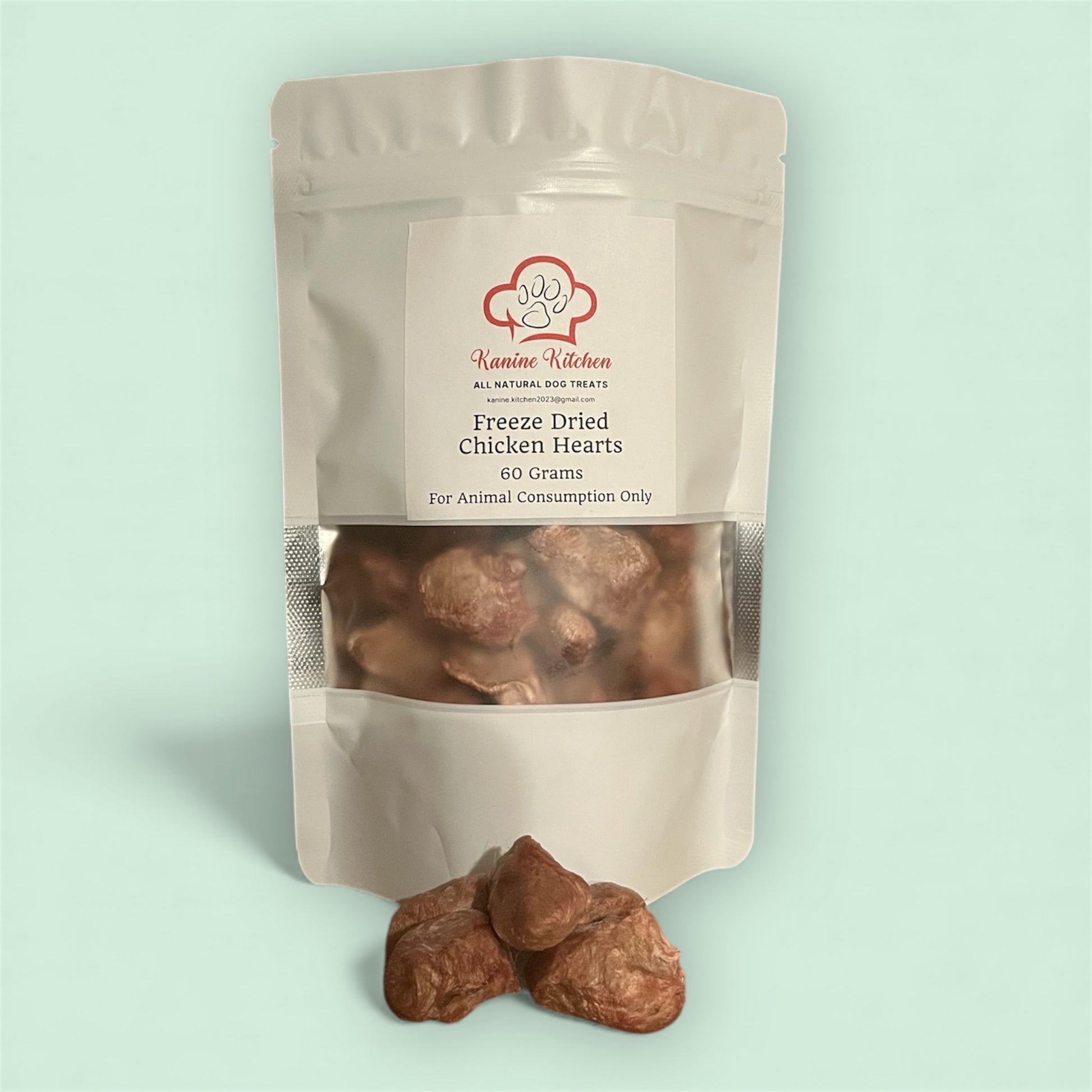 100% Chicken Hearts. Our Freeze-Dried Chicken Hearts make a wholesome, easy treat for dogs. They’re rich in protein and essential nutrients—like iron, zinc, and B vitamins—to help support strong muscles, steady energy, and overall well-being.