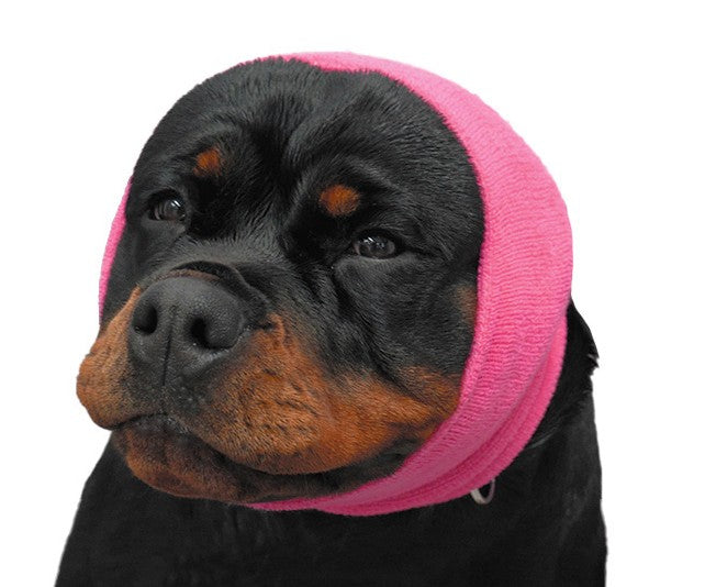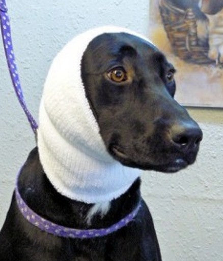 Place the ears against the pet's head so air cannot get in to them and slide the band back over the top of the head to secure the ears in place.