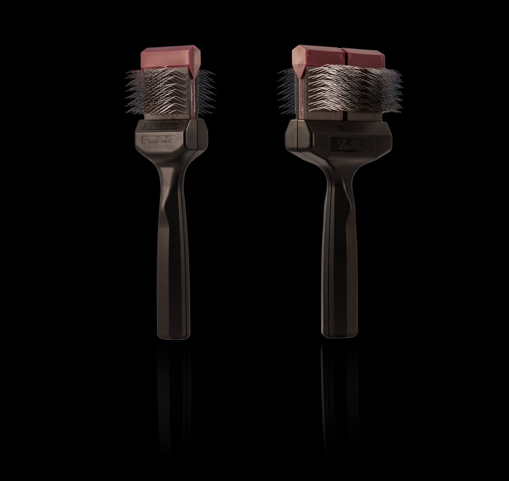 Maintaining a beautiful coat on course, thick, thick-curly, and double coated breeds may seem quite daunting. Double coated dogs can be particularly troublesome, as they have a harsh top coat, but soft, dense undercoat. The unique design and breakthrough technology of the Pro Brush (F/F) brushes grooming fears away. Its firm, but flexible, head and carefully designed bristle shape and placement allow you to contour the body and brush deep down, gently gliding through fur from skin to tip. This pro brush tackles tough mats with ease and provides for superb undercoat removal.