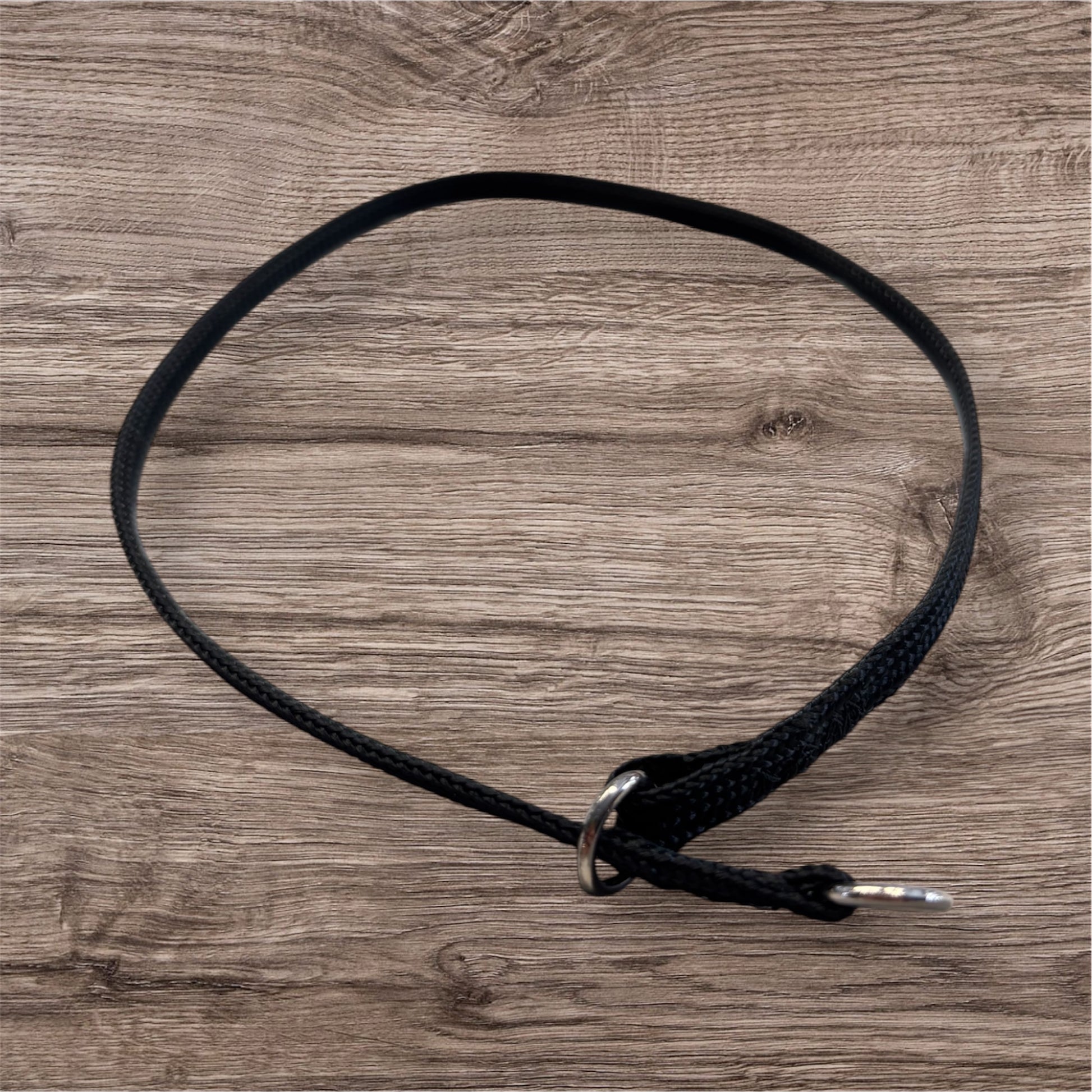 These are handmade with 7mm flat poly cord and can be custom sized if need be. These will work well for medium to large dogs.