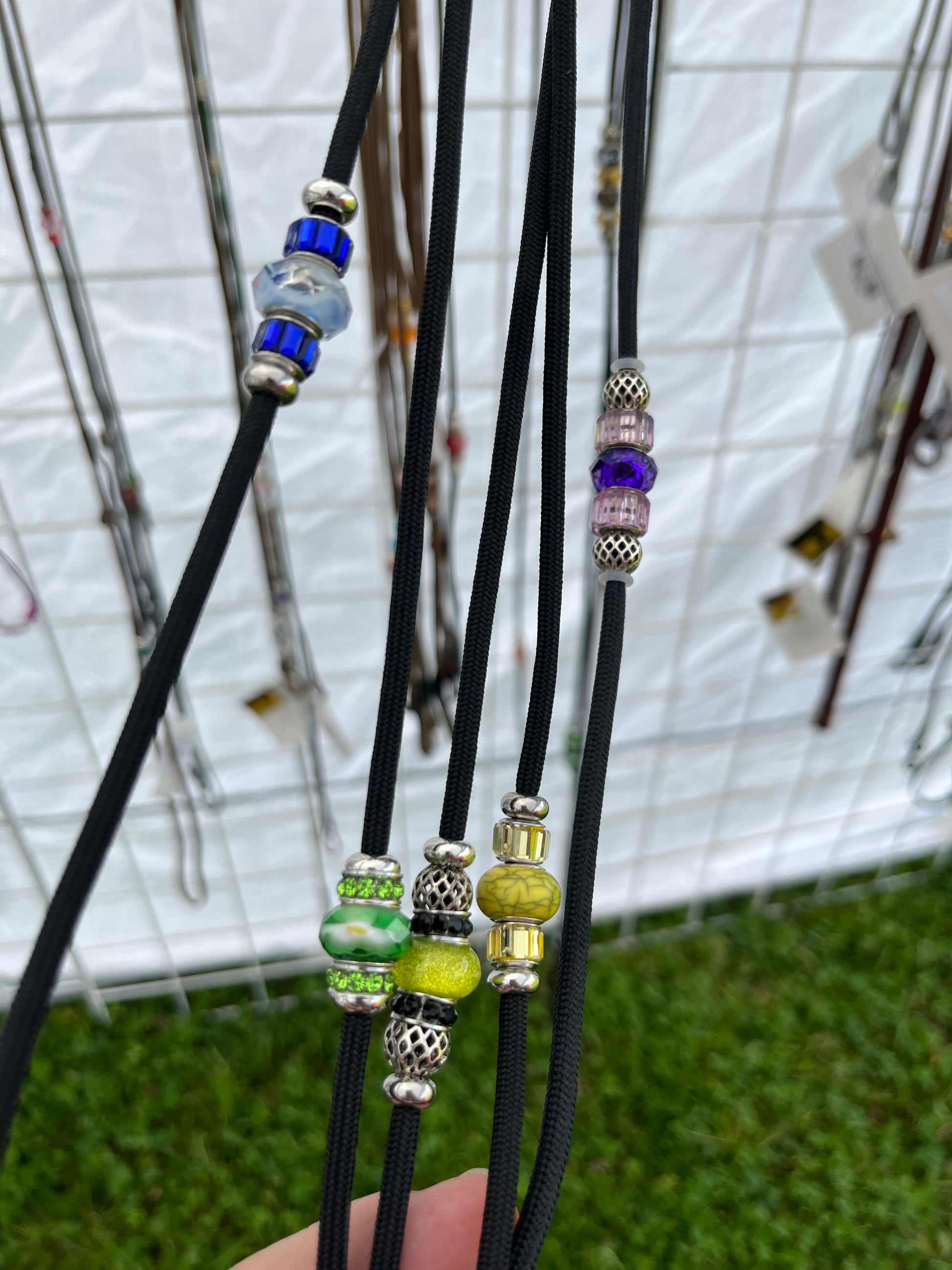 These beautiful Show Leashes look great and are made of 5mm cord, with beautiful beads. We have many options in sizes and they come in brown, black, white and grey. These will work well, for medium to large breed dogs.