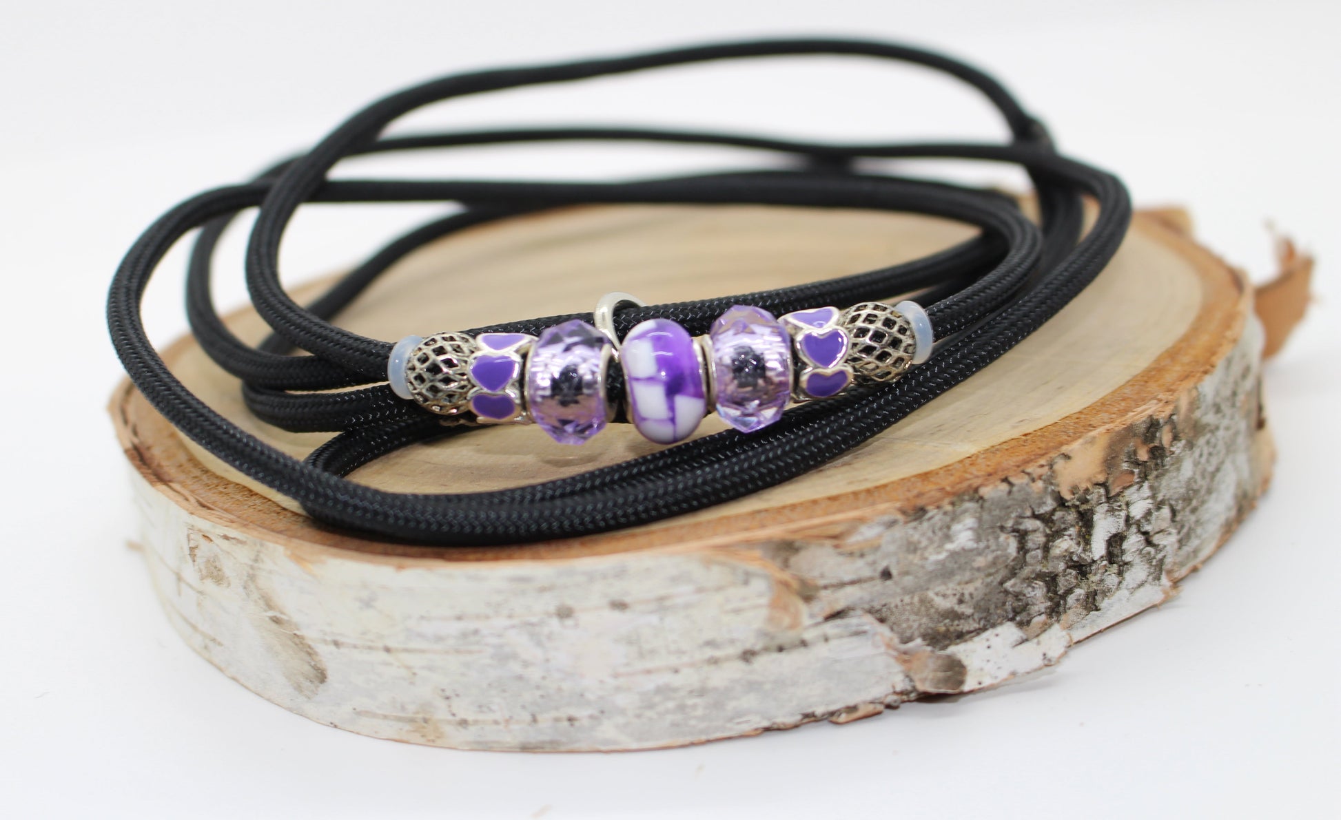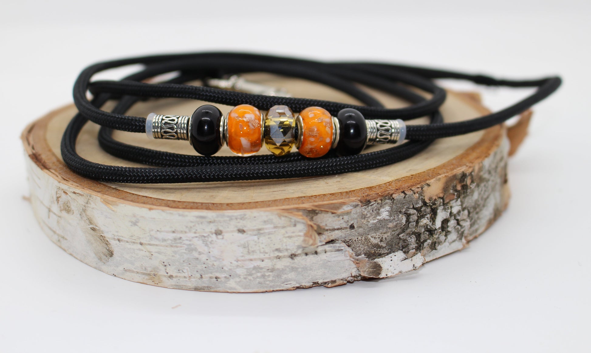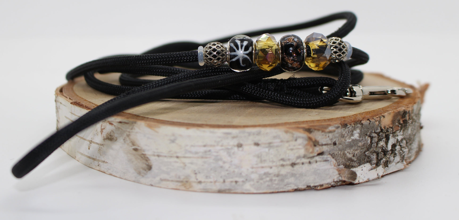 These beautiful Show Leashes look great and are made of a heavier cord, with beautiful beads. We have many options in sizes and they come in brown, black, white and grey. These will work well, for medium to X-large breed dogs. Please let us know if you have a bead color preference, other than what we show.