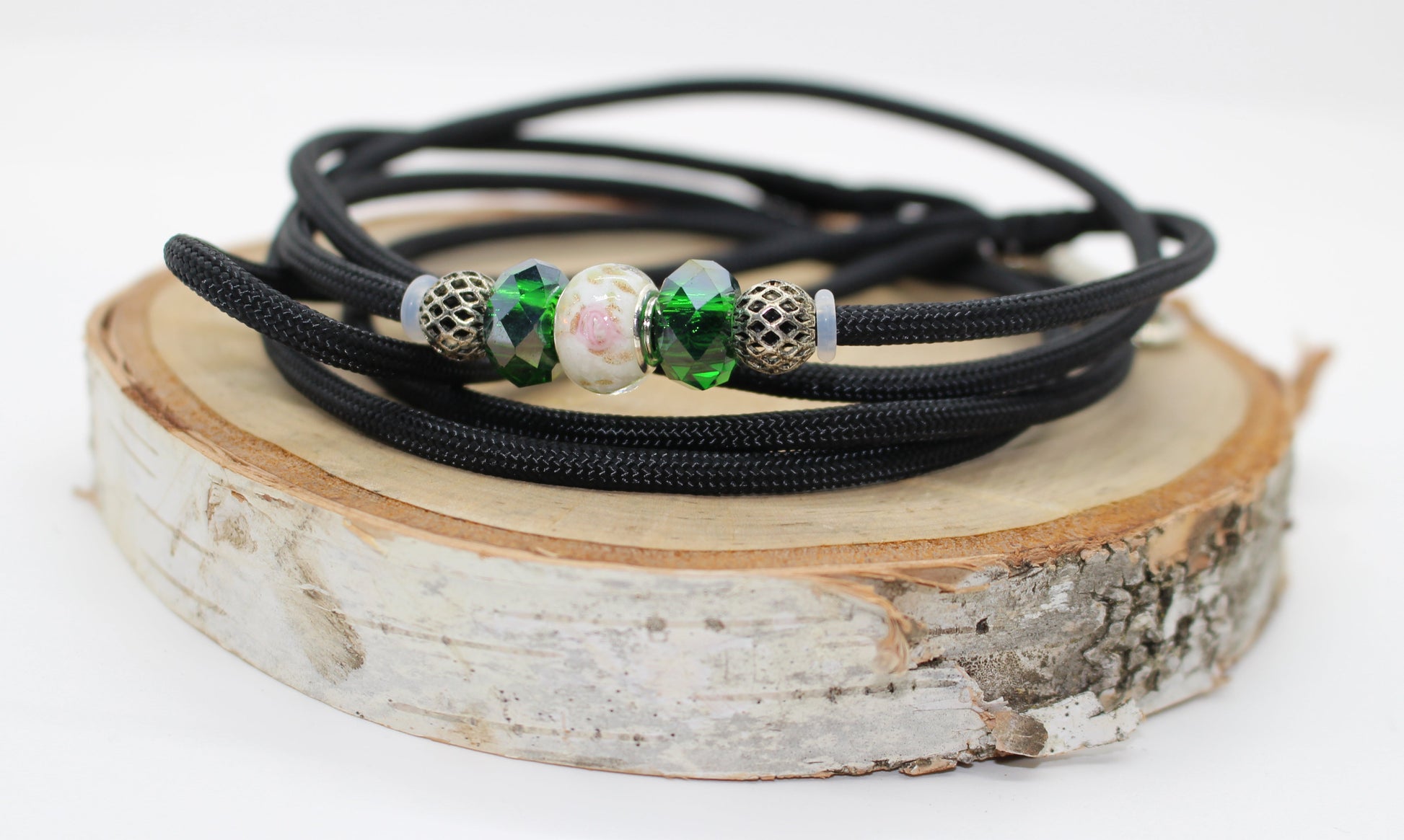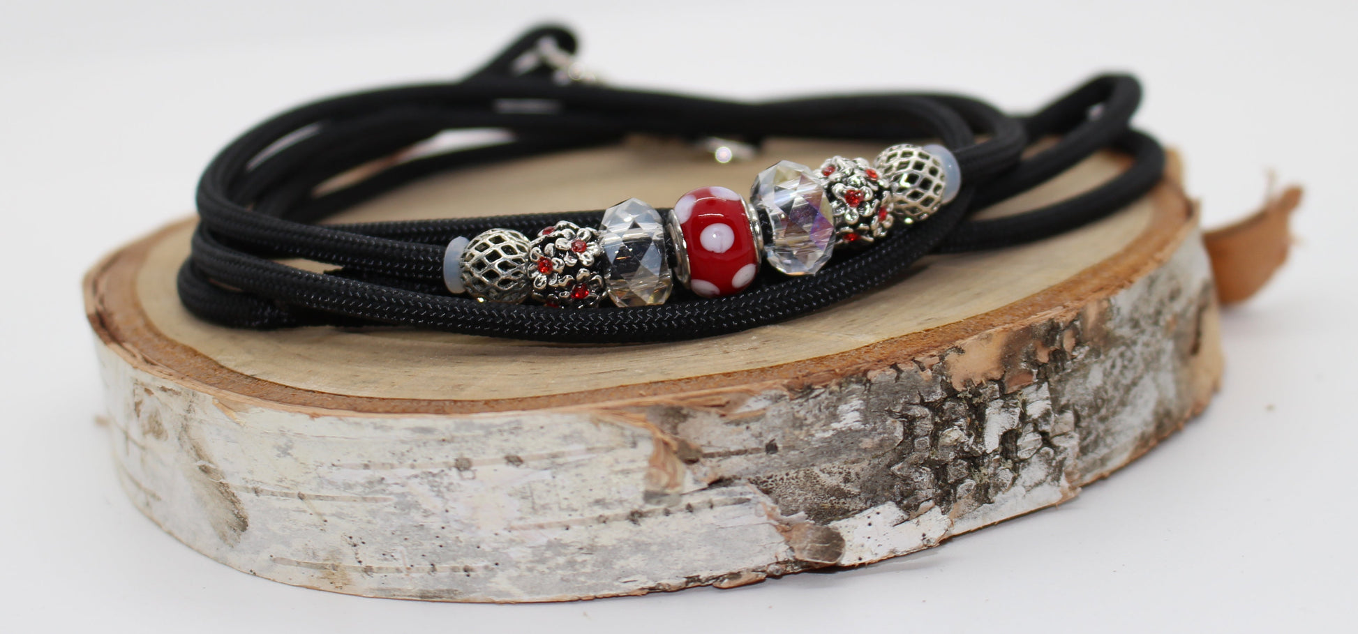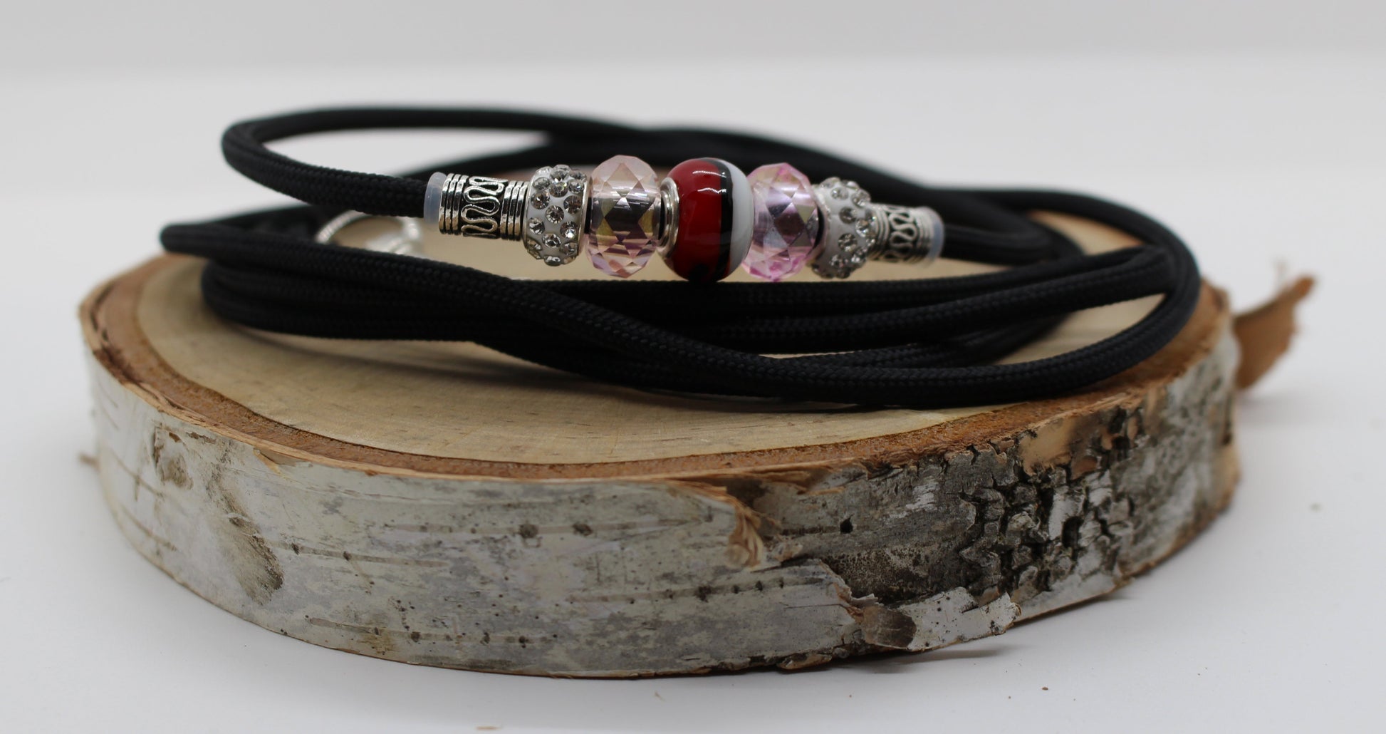 These beautiful Show Leashes look great and are made of a heavier cord, with beautiful beads. We have many options in sizes and they come in brown, black, white and grey. These will work well, for medium to X-large breed dogs. Please let us know if you have a bead color preference, other than what we show.